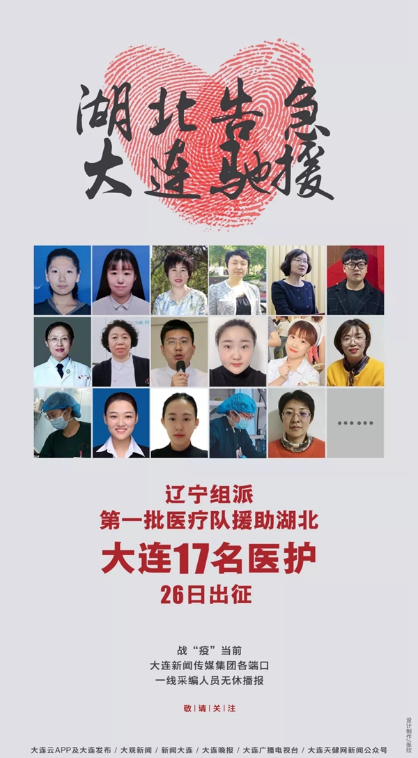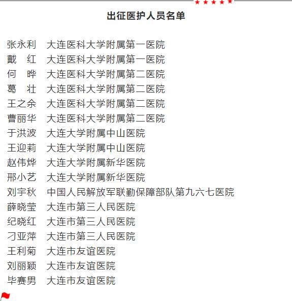 記者從大連市衛(wèi)生健康委獲悉,我市確定了17名醫(yī)護(hù)人員參與到遼寧第一批援助湖北應(yīng)對新型冠狀病毒感染的肺炎疫情醫(yī)療隊(duì)中,今日早上將出征馳援。