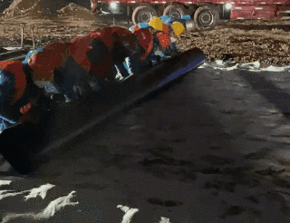 △河南駐馬店的劉海龍師傅,今年沒有回家,自愿到工地來支援!他說自己雖是白班,但工地上沒有具體上班和下班的時間,有事情就要去做?!拔医裉斓娜蝿?wù)是看護(hù)這個修路用的定位旗,不能讓人碰倒。我在這里沒有認(rèn)識的人,我是自愿過來的”