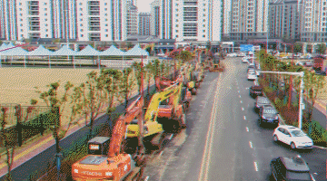 上百臺挖掘機(jī)、推土機(jī)等施工機(jī)械