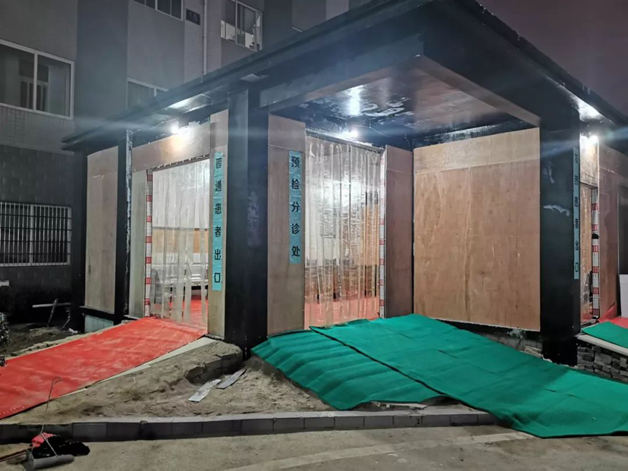 由于春節(jié)期間找不到建筑工人,在黨員帶領(lǐng)下,醫(yī)護(hù)人員和職工紛紛上陣,在一天不到的時(shí)間內(nèi),在三〇二醫(yī)院搭建起了初見(jiàn)雛形的預(yù)檢分診處。