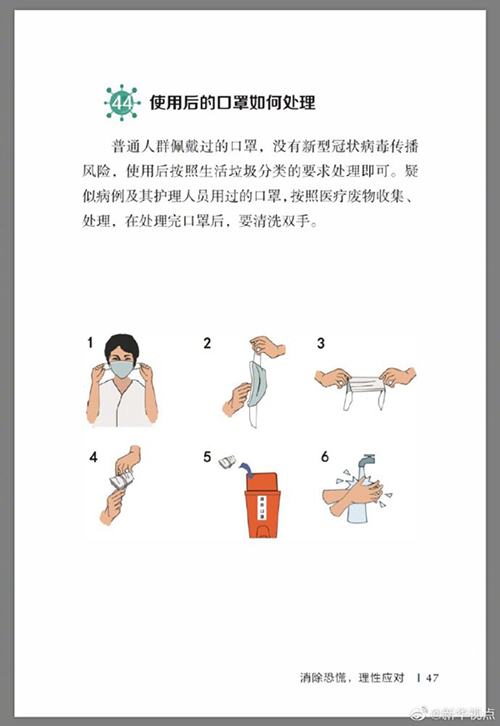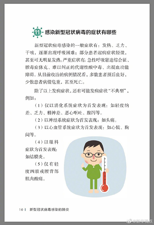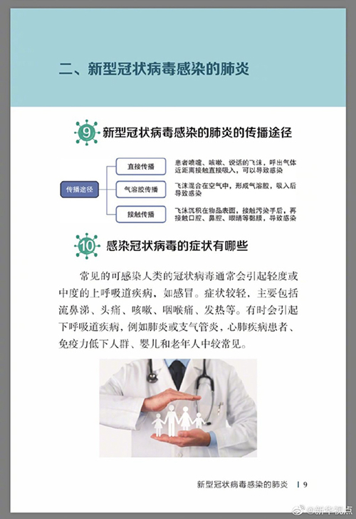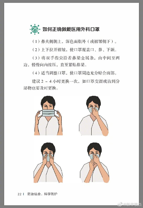 中國疾病預(yù)防控制中心編寫的《新型冠狀病毒感染的肺炎公眾防護指南》,日前出版發(fā)行。此書聚焦公眾個人與家庭防護、居家醫(yī)學(xué)觀察、理性就醫(yī)、心理疏導(dǎo)等防治細節(jié),通過問答形式解讀新型冠狀病毒感染的肺炎有關(guān)問題疑惑,引導(dǎo)公眾正確認識,積極做到防治結(jié)合、科學(xué)防護、消除恐慌、理性應(yīng)對。此書包括圖書、電子書、網(wǎng)絡(luò)版讀物等多種形式,第一批圖書已緊急送往武漢抗擊疫情第一線,電子書、網(wǎng)絡(luò)版讀物在學(xué)習(xí)強國、健康中國、人衛(wèi)健康、掌閱等多個網(wǎng)絡(luò)平臺、微信公眾號公益?zhèn)鞑?,并為全國各地提供可印制的PDF版本。(記者史競男;圖片來自《新型冠狀病毒感染的肺炎公眾防護指南》)