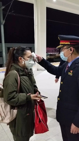 9時(shí)54分,D785次列車到達(dá)昆明南站,昆明南站的工作人員再次給她測(cè)了體溫沒(méi)問(wèn)題后,立即帶她去找昆明南開(kāi)往南京南的G1540次列車的列車長(zhǎng)張峻豪。10時(shí)20分,郎冰凝坐上了G1540次列車奔向武漢。