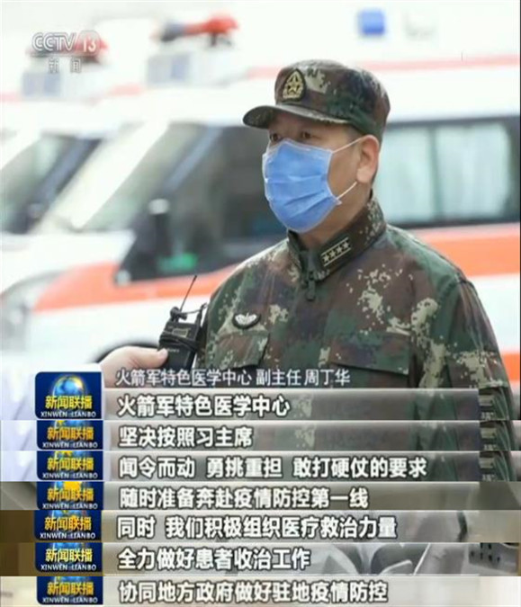 在防控新型冠狀病毒感染肺炎疫情的關(guān)鍵時刻,1月29日,中共中央總書記、國家主席、中央軍委主席習(xí)近平對軍隊做好疫情防控工作作出重要指示,強(qiáng)調(diào)要牢記宗旨,勇挑重?fù)?dān),為打贏疫情防控阻擊戰(zhàn)作出貢獻(xiàn)。人民軍隊堅決貫徹落實習(xí)主席重要指示,力爭在這場沒有硝煙的戰(zhàn)斗中,為祖國和人民再立新功。