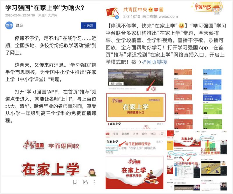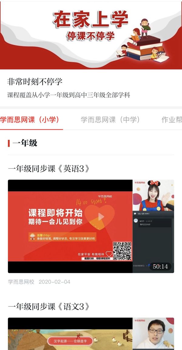 看點2.“在家上學(xué)”專區(qū):停課不停學(xué)!“學(xué)習(xí)強國”聯(lián)合“學(xué)而思”“新東方”“猿輔導(dǎo)”“作業(yè)幫”“掌門教育”等多家教育機構(gòu),組織上百位北大、清華、哈佛畢業(yè)名師,全國特級教師、家庭教育專家、心理學(xué)專家為延期開學(xué)的中小學(xué)生講課,提供從小學(xué)一年級到高中三年級全學(xué)科、全時段課程,直播、回看兩不誤,實現(xiàn)“停課不停教”“停課不停學(xué)”。此外,還有北京101中學(xué)、人大附中、清華附中、成都七中、中關(guān)村小學(xué)等中小學(xué)名校上千堂部級優(yōu)質(zhì)課程,讓全國各地的孩子們足不出戶就能享受最優(yōu)質(zhì)的教育資源。