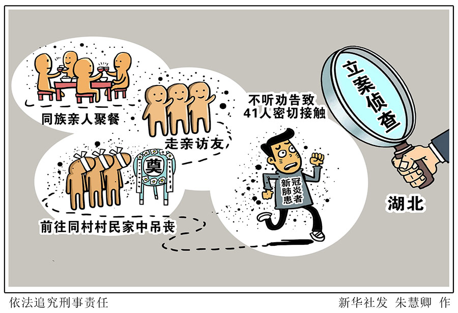 今年1月21日,徐某華駕車載其妻子、兒子、姐姐從武漢返回宣恩過(guò)年。徐某華回村后,村干部到其家中宣傳預(yù)防新型冠狀病毒知識(shí)以及相關(guān)政策,并與其簽訂承諾書(shū)。但徐某華不聽(tīng)勸告,先后與同族親人聚餐、走親訪友,還前往同村雷某家中吊喪。2月1日,徐某華自覺(jué)身體不適到椿木營(yíng)鄉(xiāng)衛(wèi)生院診治,2月3日被確診為新冠肺炎患者。