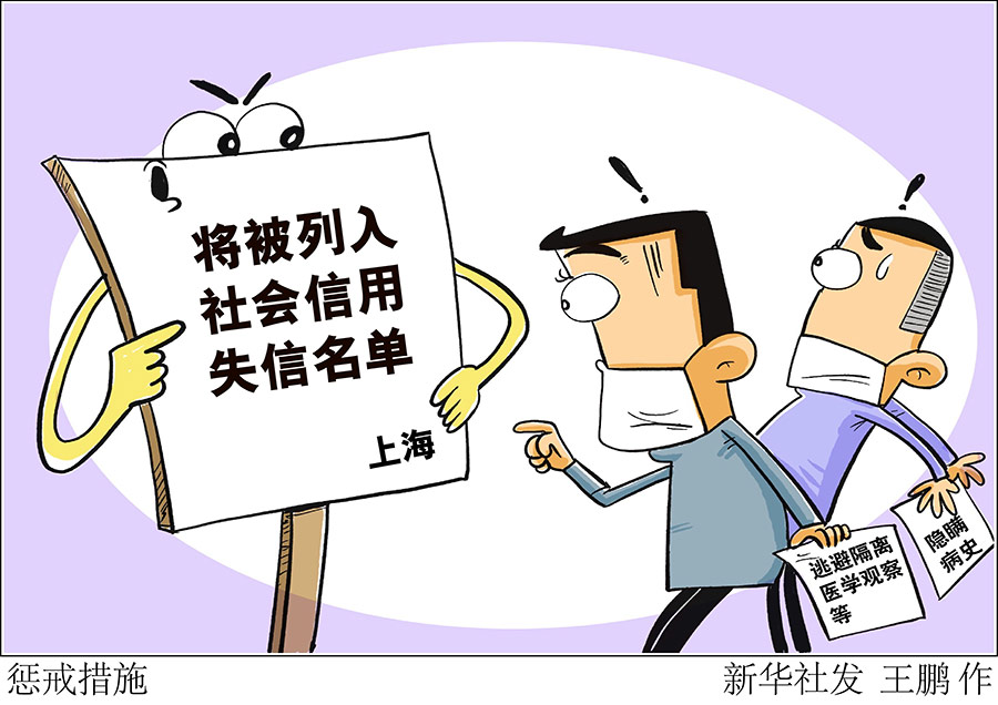 決定還指出,疫情防控工作中,任何單位和個人,違反有關(guān)法律法規(guī)和該決定,由公安機(jī)關(guān)等有關(guān)部門依法給予處罰;給他人人身、財(cái)產(chǎn)造成損害的,依法承擔(dān)民事責(zé)任;構(gòu)成犯罪的,依法追究刑事責(zé)任。個人有隱瞞病史、重點(diǎn)地區(qū)旅行史、與患者或疑似患者接觸史、逃避隔離醫(yī)學(xué)觀察等行為,除依法嚴(yán)格追究相應(yīng)法律責(zé)任外,有關(guān)部門還應(yīng)當(dāng)按照國家和上海市規(guī)定,將其失信信息向上海市公共信用信息平臺歸集,并依法采取懲戒措施。