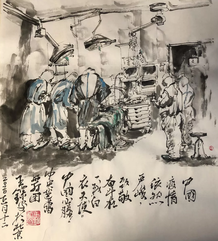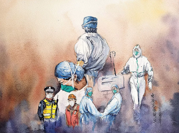水彩畫(huà)《隔離疫情 不隔離愛(ài)》作者:中央芭蕾舞團(tuán)舞美設(shè)計(jì) 劉辛