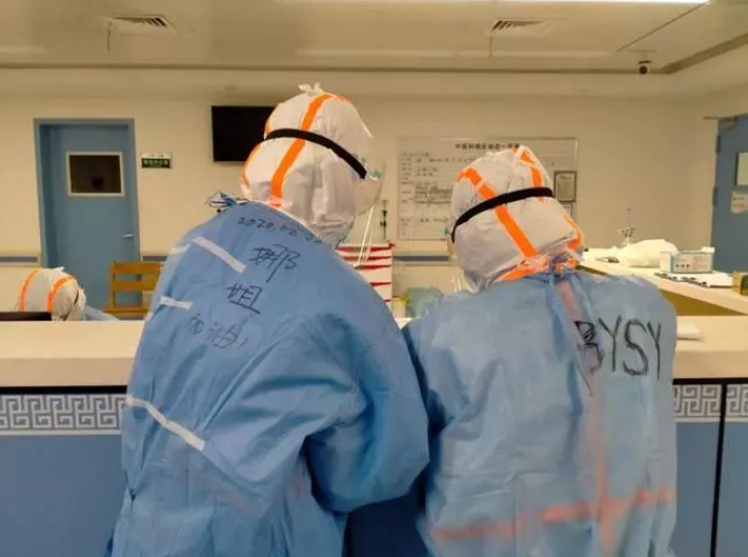 啟用危重癥新病房的第一天,姝姐上了一個(gè)“24小時(shí)白連夜班”。第一位來(lái)診的是個(gè)危重患者,姝姐主動(dòng)請(qǐng)纓:“來(lái),我收這個(gè)病人。”凌晨3點(diǎn),到了該下班的時(shí)間,姝姐還在寫(xiě)病歷,她說(shuō)污染區(qū)的護(hù)士還沒(méi)換好衣服,“等她們出來(lái),我再結(jié)束工作,我們一起離開(kāi)”。而這一等又是一個(gè)小時(shí)……下午15點(diǎn)到21點(diǎn)又輪到北醫(yī)三院隊(duì)員們上崗了,她再次主動(dòng)請(qǐng)纓參加工作,我有些擔(dān)心她的身體會(huì)吃不消,本想勸阻一下,誰(shuí)知她微微一笑說(shuō):“你姝姐有啥不行的!”直到22點(diǎn)30,姝姐才從隔離病房出來(lái),口罩和眼罩已經(jīng)壓紅了鼻梁,衣服早已被汗水浸濕了,可她仍然面帶著微笑。