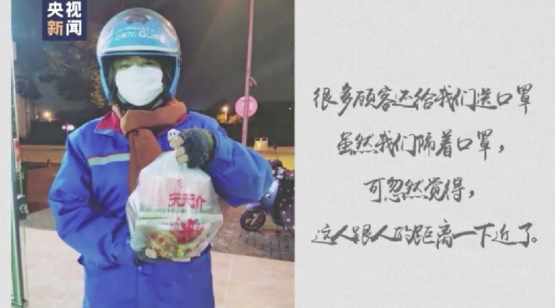 ????以前送餐的時(shí)候,最希望的就是顧客能理解我們,不管是點(diǎn)餐的顧客,還是小區(qū)物業(yè)值班的師傅都對我們非常好,很多顧客還給我們送口罩,雖然我們隔著口罩,可忽然覺得人跟人的距離一下近了。