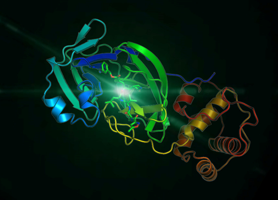 圖為新型冠狀病毒3CL水解酶的高分率晶體結構。上海科技大學免疫化學研究所和中國科學院上海藥物研究所抗2019-nCoV冠狀病毒感染聯合應急攻關團隊供圖