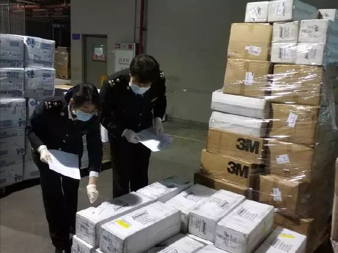廣州白云機(jī)場(chǎng)海關(guān)深夜驗(yàn)放20.5萬個(gè)防護(hù)口罩