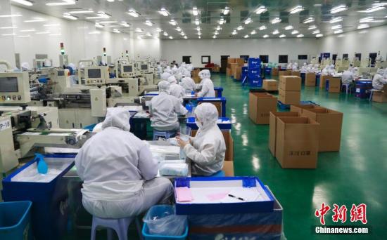 資料圖:工人在趕制口罩。湯彥俊 攝