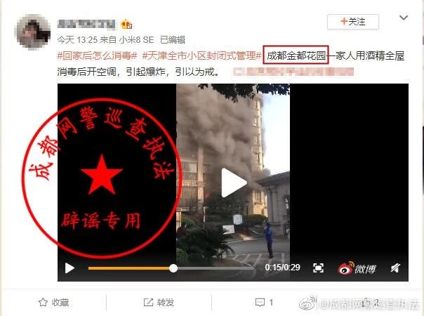 各地消防、網(wǎng)警部門辟謠:上述地區(qū)均未發(fā)生相關(guān)火情。事實上,視頻中的火災(zāi)2月5日發(fā)生在江蘇句容,起火原因也并非是噴灑酒精后開空調(diào)。