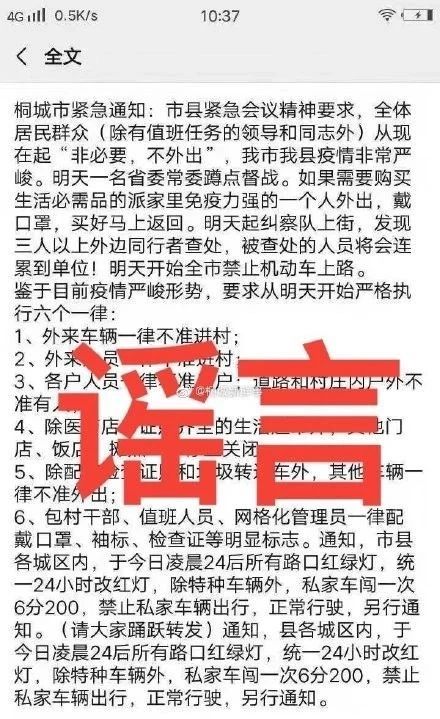 謠言二:多地發(fā)布“六個一律”緊急通知:三人不準(zhǔn)同行.....