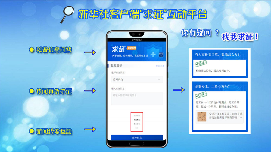 當(dāng)前,疫情防控正處于關(guān)鍵時(shí)期,權(quán)威信息的及時(shí)獲知、科學(xué)防護(hù)知識(shí)的廣泛普及,至關(guān)重要。新華社客戶端“求證”平臺(tái)希望通過與您的良性互動(dòng),可以盡量幫到您,并希望以求知求真的方式,與您一起,為打好疫情防控阻擊戰(zhàn)貢獻(xiàn)力量。