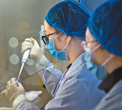 重慶市長壽區(qū)疾病預(yù)防控制中心“90后”女檢測員文纖纖(左)、楊涵與病毒“零距離”對(duì)峙,持續(xù)戰(zhàn)斗在新型冠狀病毒PCR檢測室,為患者的診治爭取了寶貴時(shí)間。圖為兩位檢測員在提取化驗(yàn)結(jié)果。樊 強(qiáng)攝(人民視覺)