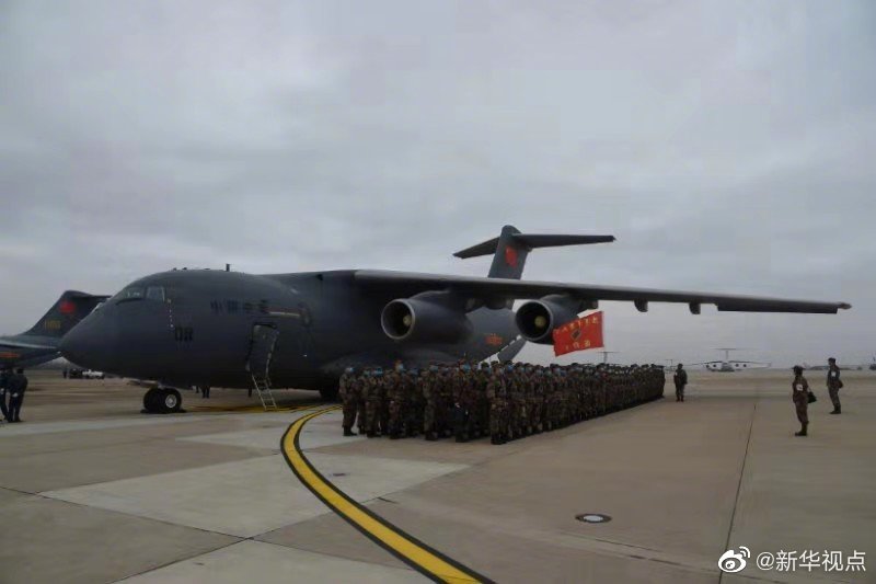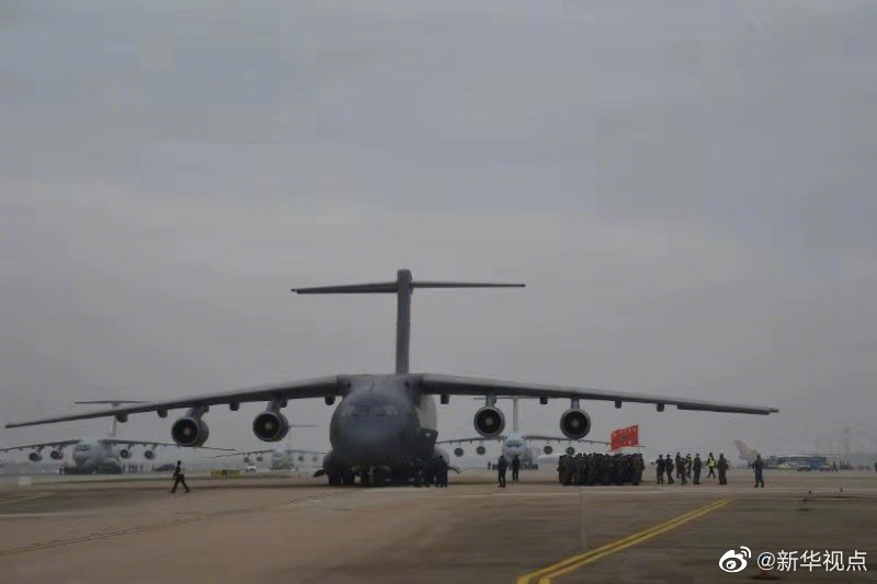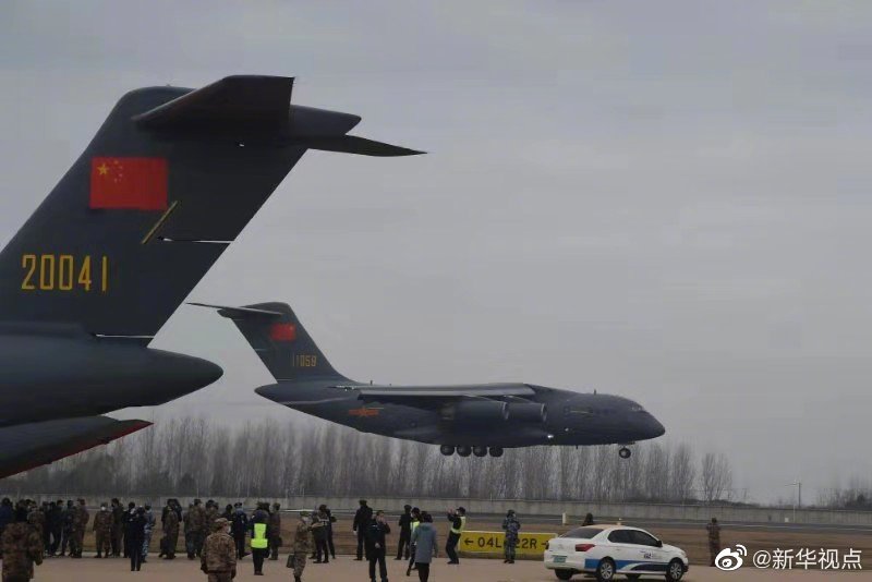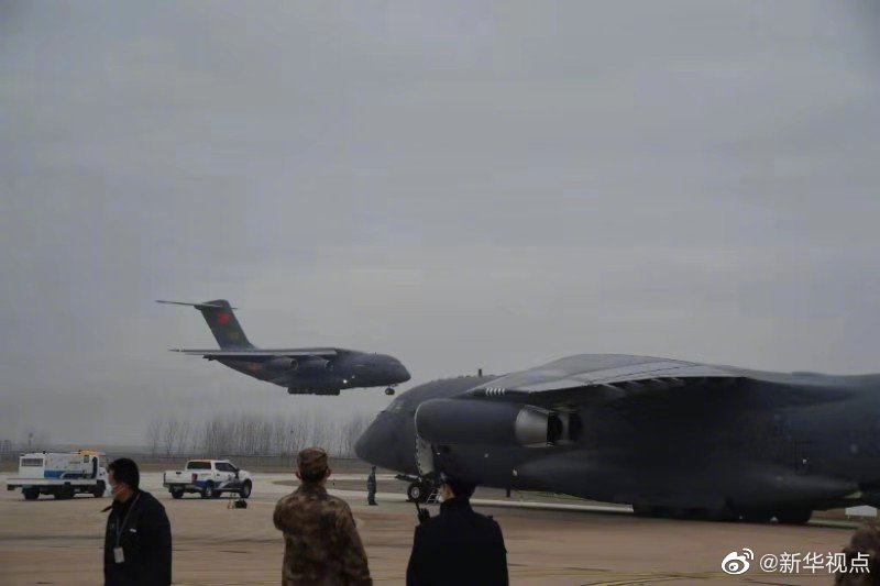 軍隊(duì)增派2600名醫(yī)護(hù)人員支援武漢抗擊新冠肺炎疫情。國產(chǎn)大型運(yùn)輸機(jī)運(yùn)-20“胖妞”首次參加非戰(zhàn)爭軍事行動。13日,空軍出動3型11架運(yùn)輸機(jī)多地同步向武漢空運(yùn)醫(yī)療隊(duì)員抵達(dá)武漢天河機(jī)場。(新華社記者黎云攝) ????