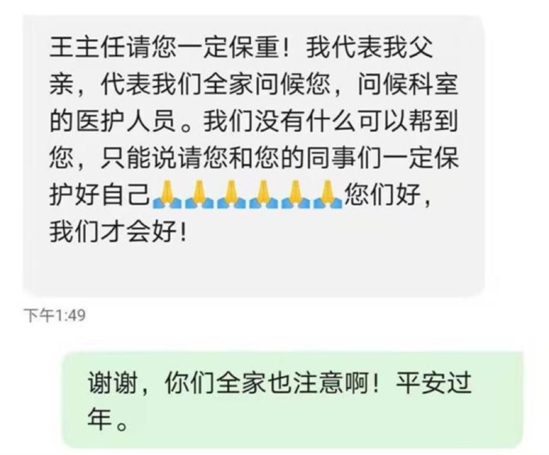1月30日晚上10時(shí)許,武漢市中心醫(yī)院呼吸與危重癥醫(yī)學(xué)科副主任醫(yī)師王亮朝拖著疲憊的身子回到家里,意外收到了之前一位患者發(fā)過來的加油短信,簡單的幾句話,讓他感覺十分溫暖,充滿力量。