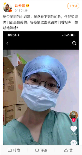 這兩天,相聲演員岳云鵬發(fā)的微博火了。原來是前線的一位護(hù)士在社交媒體平臺(tái)發(fā)文稱,等疫情結(jié)束想去德云社看演出。岳云鵬看到后在微博暖心回復(fù)稱:這位美麗的小姐姐,雖然看不到你的臉,但我知道你們都是最美的。等疫情過去我請(qǐng)你們看相聲,想聽啥演啥!