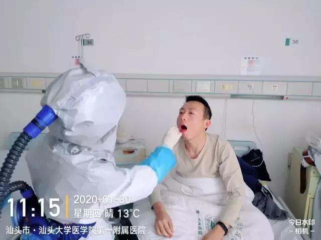 32歲的沈武富因感染新型肺炎在汕頭大學(xué)醫(yī)學(xué)院附屬第一醫(yī)院隔離治療,他用鏡頭記錄下自己的治療過程。