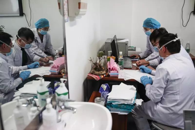 8日傍晚,武漢天氣陰冷,一陣陣寒風穿過敞開的窗戶,吹進人民醫(yī)院7號樓一個房間里。這個房間以前也許是個會議室,但此刻,除了沿墻壁擺滿的椅子外,沒有任何陳設。換防會議就在這個空蕩蕩的房間里舉行。