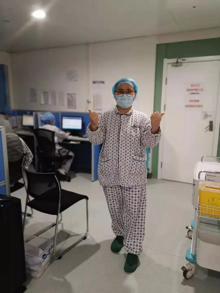 是的,我的家人在等我回家。但是患者們何嘗不是如此呢?我對她說:“婆婆,我不怕,我們的防護做得很好。您也要快點好起來,您的家人也盼著您快點康復(fù),也在等著您回家呢!”她笑著點了點頭,眼眶也濕潤了。
