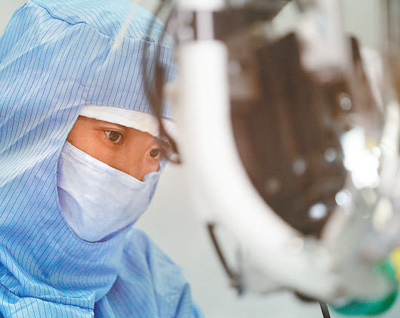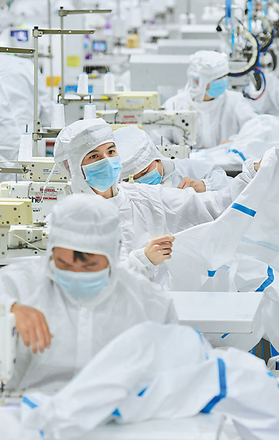 2月4日,福建晉江市一間無(wú)菌實(shí)驗(yàn)室,工人正在加緊生產(chǎn)防護(hù)服,為防疫一線提供物資保障。新華社記者 姜克紅攝