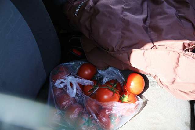 2月16日,湖北省武漢市,許可副駕旁的番茄。中青報(bào)·中青網(wǎng)記者 趙迪攝