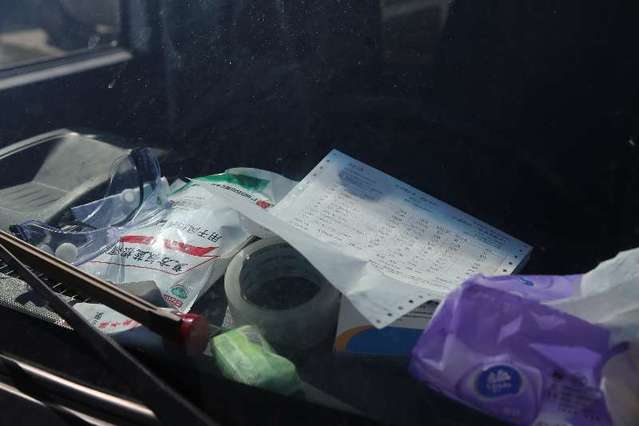 2月16日,湖北省武漢市,許可送菜車車窗旁的物品。中青報(bào)·中青網(wǎng)記者 趙迪攝