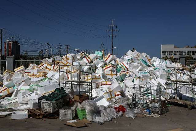 2月16日,湖北省武漢市,美菜武漢六倉外堆放的包裝盒。中青報(bào)·中青網(wǎng)記者 趙迪攝
