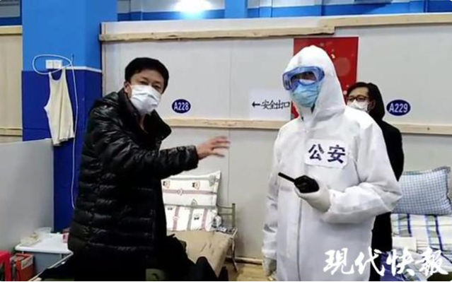 一個是執(zhí)勤民警,一個是新冠肺炎感染者,父子倆,在方艙醫(yī)院里不期而遇。2月14日,武漢江岸方艙醫(yī)院剛啟用不久,陸續(xù)收治病人,方艙醫(yī)院民警突擊隊的王桓峰正在執(zhí)勤,偶然間,一個熟悉的面孔出現(xiàn)在他的面前,“這不是父親嗎?”原來,剛剛確診不久的父親,恰巧被收治在兒子執(zhí)勤的方艙醫(yī)院。