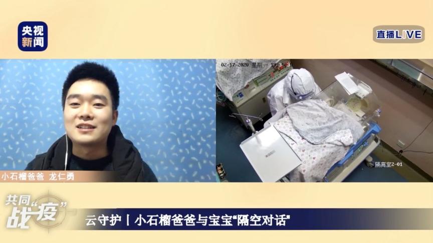 目前,石榴爸爸已經(jīng)出院,處在居家隔離狀態(tài)。他通過央視新聞《武漢云守護(hù)石榴寶寶》網(wǎng)絡(luò)直播,關(guān)注著寶寶的一舉一動,高興的心情溢于言表。在爸爸眼里,寶寶的每一次翻身、吃奶、舉手、抬腿,不管什么動作都是最美好的。