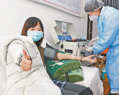 近日,武漢市江夏區(qū)中醫(yī)醫(yī)院醫(yī)務(wù)工作者吳芬在捐獻血漿。