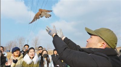 山東省青島市城陽區(qū)野生動(dòng)植物保護(hù)志愿者在白沙河入海口濕地,放歸一只救助的國(guó)家二級(jí)重點(diǎn)保護(hù)動(dòng)物紅隼。 王海濱攝