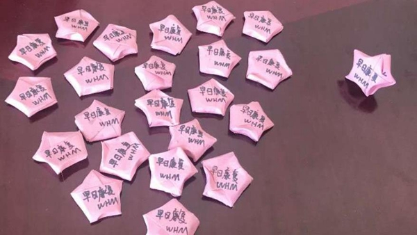 住進武漢江夏區(qū)方艙醫(yī)院的輕癥患者不得不與家人隔離,不能出門活動,在初春的戶外仰望星空,暫時只能是一個愿望。2月20日的夜晚,夜班護士卻把“星星”帶進了“方艙”!南京市中西醫(yī)結合醫(yī)院的護士王慧敏上班時,向每一位患者贈送了一個自己親手疊的許愿星,每一個“星星”都寫上了祝福的話語:“叔叔阿姨晚上好,這是我自己做的許愿星,祝愿你們早日康復!”