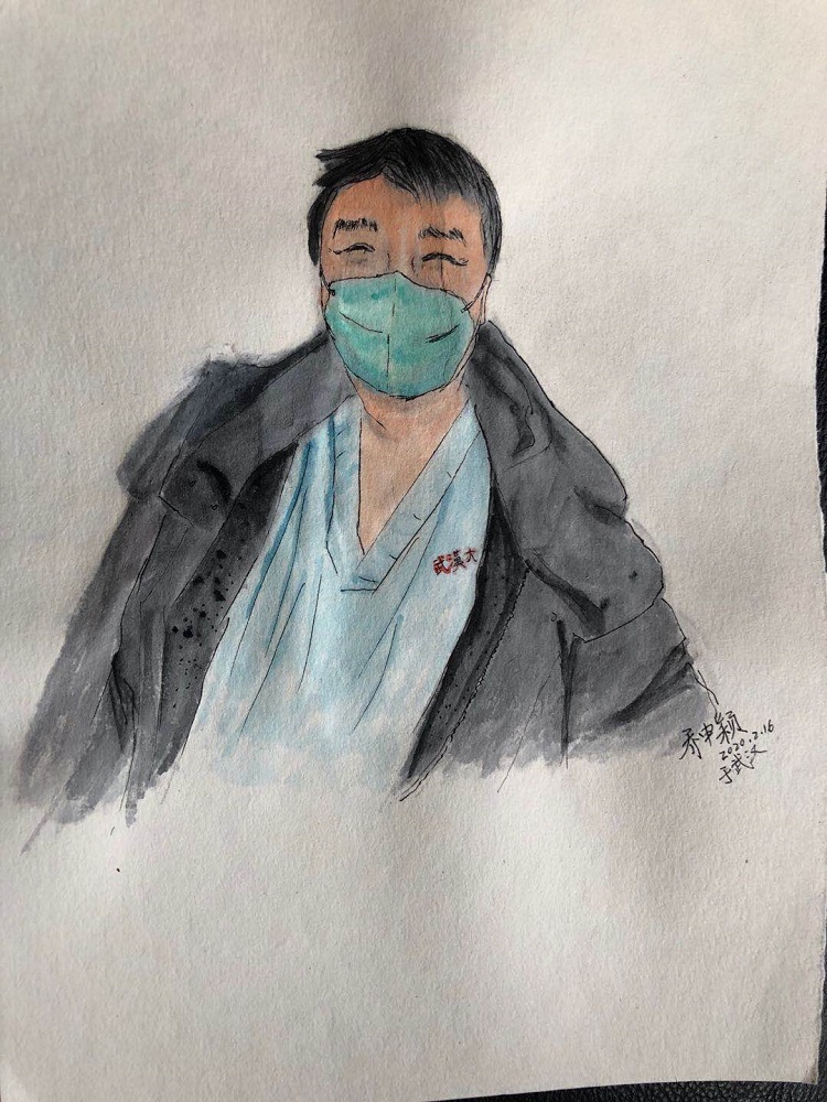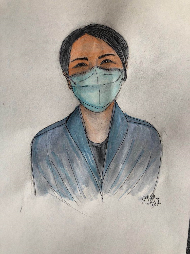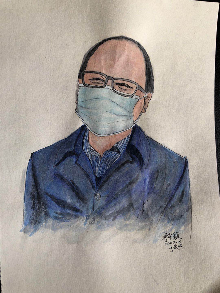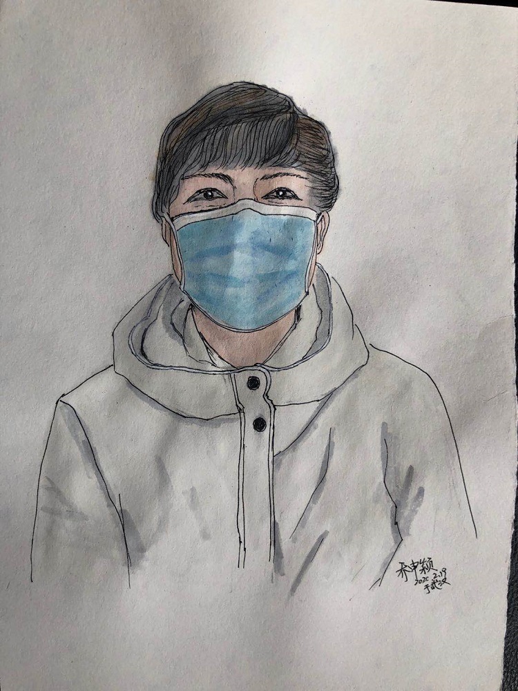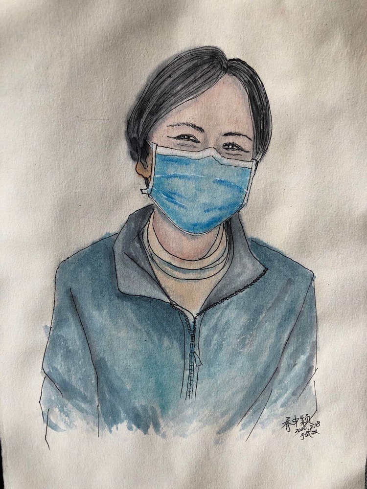 剛開始就是正常的寫稿拍視頻,隨著時(shí)間的推移,就特別想畫畫。這個(gè)城市里充滿了觸動(dòng)心靈的瞬間,可能是一個(gè)笑臉,可能是一個(gè)手勢。我總覺得光是寫下來、拍下來,還遠(yuǎn)遠(yuǎn)不夠,只有把它畫下來,才真正能把我那一刻的感動(dòng)也一起收藏起來。當(dāng)時(shí)武漢根本買不到顏料,我請同事幫忙從北京帶過來,2月16號的時(shí)候開始畫。第一個(gè)想到的就是采訪過的醫(yī)護(hù)人員的笑臉。因?yàn)榇蠹叶急赖煤芫o,好多醫(yī)護(hù)人員采訪中說著說著就哭了。雖然對采訪來說可能是件好事,但我總感覺很愧疚,覺得為個(gè)采訪讓人又難過一次。后來就形成一個(gè)習(xí)慣,每次我都要問一個(gè)問題:今天有沒有開心的事呀?或者說:咱換個(gè)話題,說點(diǎn)高興的!他們給了我各種各樣的答案,但是不管是為什么高興,那一刻他們的笑容都特別燦爛特別美好。所以我把他們的笑畫了下來,希望更多的人能看到,能從中汲取力量。
