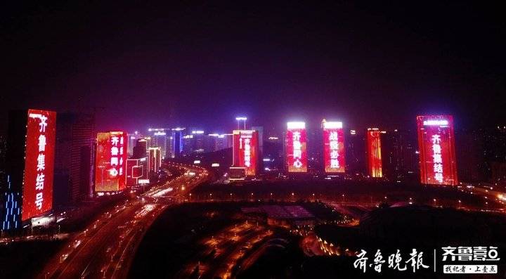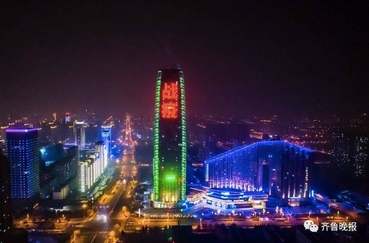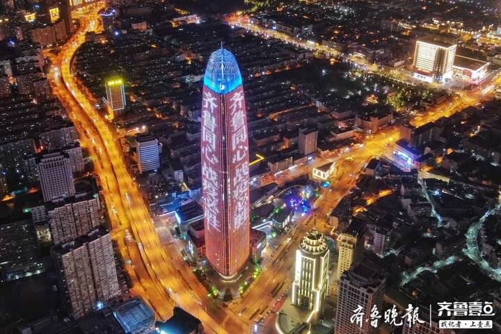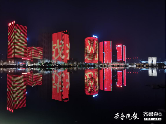 2月22日19時整至20時整,山東十六市的各大地標(biāo)建筑在同一時間一起璀璨點亮。