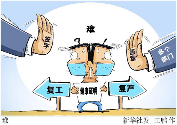 根據(jù)中央部署,全國不少地方在嚴(yán)抓疫情防控的基礎(chǔ)上,正逐步開展復(fù)工復(fù)產(chǎn)?!靶氯A視點”記者接到一些群眾和企業(yè)反映,返程上班和恢復(fù)生產(chǎn),在辦理相關(guān)證明過程中遭遇不少形式主義的煩惱。