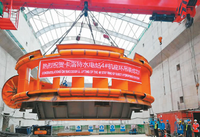 “中巴經(jīng)濟(jì)走廊”優(yōu)先實(shí)施項(xiàng)目巴基斯坦卡洛特水電站最后一套座環(huán)、基礎(chǔ)環(huán)成功吊裝。三峽集團(tuán)供圖