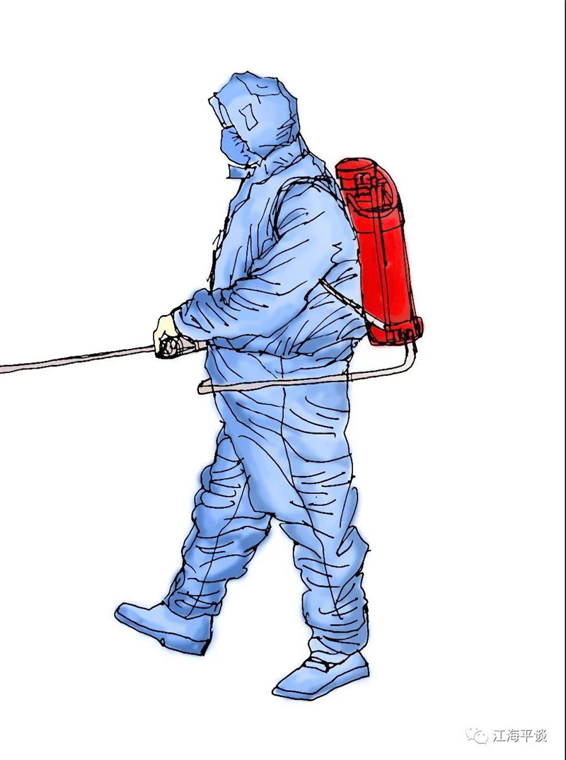 我用速寫的形式,把自己每天看到聽到的最動人的故事或場景記錄下來,組成了一幅幅“防控抗疫”的群英圖譜,特別是那些奮戰(zhàn)在一線的廣大醫(yī)務(wù)工作者以及在街頭巷尾,社區(qū)民宅忘我工作、無私奉獻的街道干部和志愿者是我描繪的主要對象。雖然,他們都是普普通通的人,但他們都做出了不平凡的事。他們是這個時代真正的英雄,也是這個時代最可愛的人!