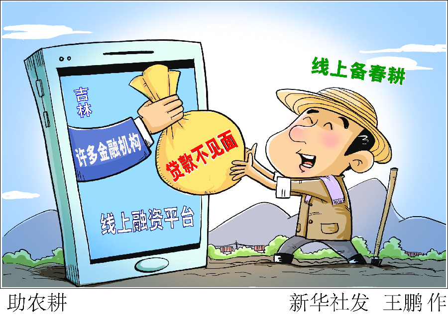 漫畫:助農(nóng)耕 一邊是為了疫情防控盡量少出門,一邊是農(nóng)時(shí)不等人,急需貸款流轉(zhuǎn)土地、購買農(nóng)資,如此“兩難”怎么解?在吉林省,許多金融機(jī)構(gòu)建設(shè)了線上融資平臺(tái),農(nóng)民足不出戶就能用手機(jī)辦理貸款。 新華社發(fā) 王鵬 作
