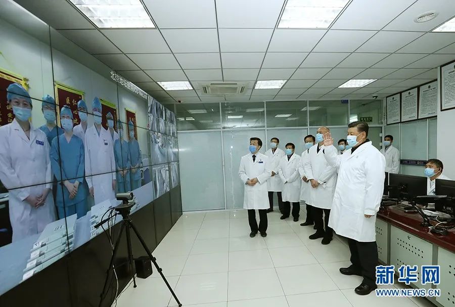 2月10日,習(xí)近平來到首都醫(yī)科大學(xué)附屬北京地壇醫(yī)院門診樓一層運(yùn)行監(jiān)控中心,通過監(jiān)控畫面察看患者住院診療情況,并視頻連線正在病房值班的醫(yī)務(wù)人員。