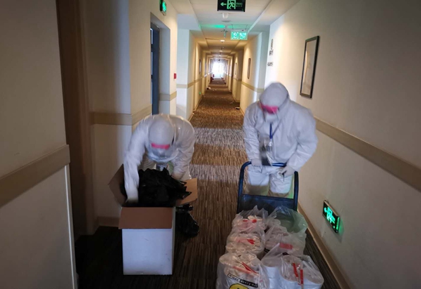 走馬嶺“康復(fù)驛站”負責人、走馬嶺街工委副書記陶勇介紹,目前整個東西湖區(qū)共有5家“康復(fù)驛站”。由于走馬嶺“康復(fù)驛站”此前作為兩次檢測轉(zhuǎn)陰患者的“待出院隔離觀察點”,所以酒店已經(jīng)按照“三區(qū)兩通道”要求進行了改造。昨天入住的出院患者來自各個醫(yī)院,包括火神山醫(yī)院、東西湖區(qū)人民醫(yī)院、兒童醫(yī)院以及各個方艙醫(yī)院,由區(qū)里和街道調(diào)配車輛完成轉(zhuǎn)運。陶勇說:“因為這里最開始作為‘雙陰’的一個待出院隔離點,所以就按照‘三區(qū)兩通道’的格局來制定。一個是病人的通道,另一個是醫(yī)生的通道,病人走了以后,我們進行殺毒、登記,然后安排到酒店的房間。我們旁邊也征用了一個別人的公司,在上面打通了一個連接酒店那邊的通道?!?/p>