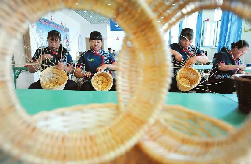 資料圖。廣靈縣農(nóng)民編織技工正在編織柳條插花籃 來(lái)源:山西日?qǐng)?bào)