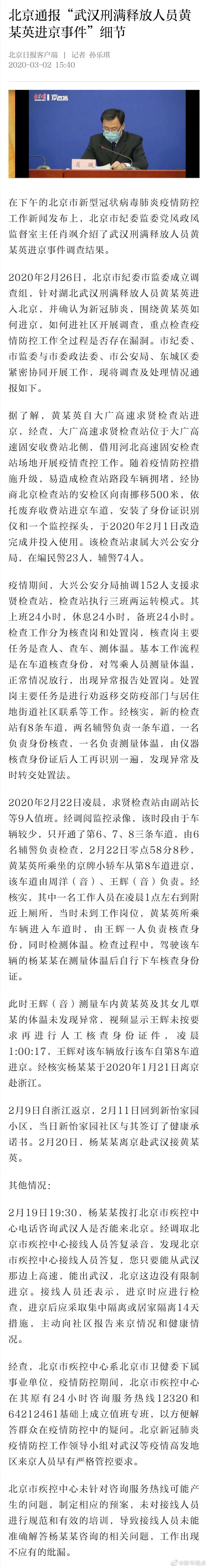 北京通報“武漢刑滿釋放人員黃某英進京事件”細節(jié)