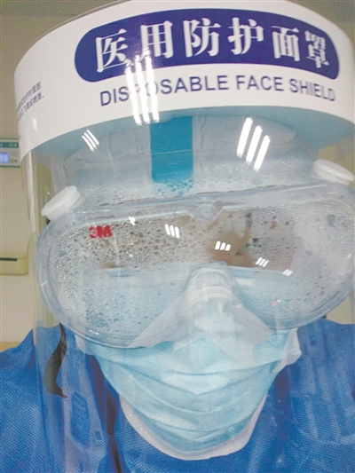 工作間隙,四川省第七批援鄂醫(yī)療隊隊員、核工業(yè)四一六醫(yī)院呼吸科護士向莉莉自拍下因汗水模糊的護目鏡。向莉莉供圖