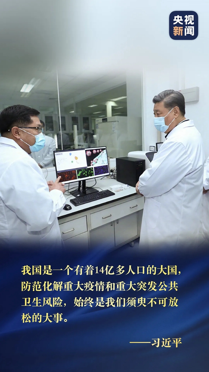 習近平總書記2日在北京考察新冠肺炎防控科研攻關(guān)工作,他強調(diào),我國是一個有著14億多人口的大國,防范化解重大疫情和重大突發(fā)公共衛(wèi)生風險,始終是我們須臾不可放松的大事。