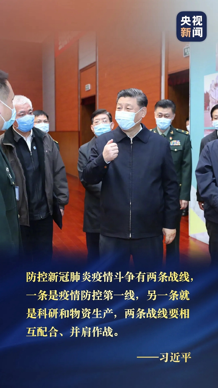 防控新冠肺炎疫情斗爭有兩條戰(zhàn)線,一條是疫情防控第一線,另一條就是科研和物資生產(chǎn),兩條戰(zhàn)線要相互配合、并肩作戰(zhàn)。