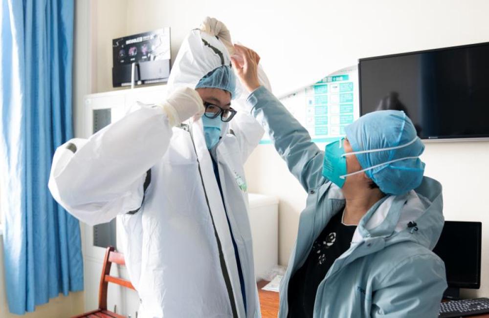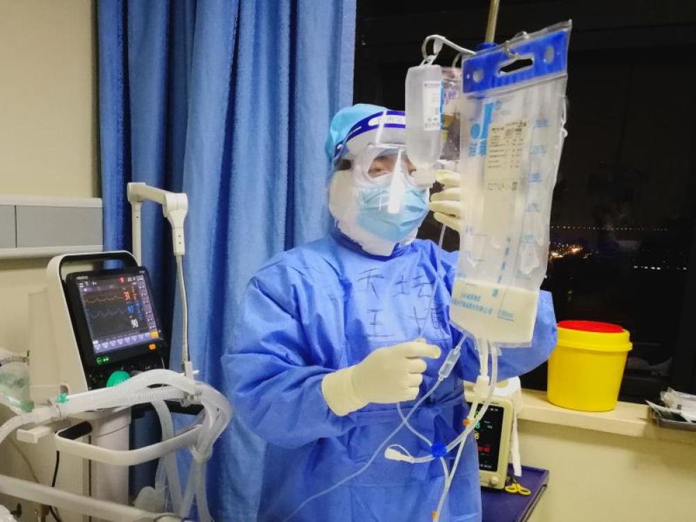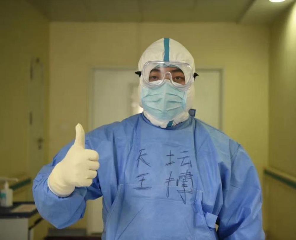 圖為北京天壇醫(yī)院支援武漢醫(yī)療隊王博在準(zhǔn)備工作中。
