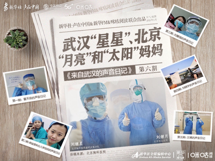 點(diǎn)擊收聽(tīng)來(lái)自武漢的聲音日記第六期。今天講述這樣的一家人。哥哥叫劉繼星,是北京胸科醫(yī)院援武漢醫(yī)療隊(duì)成員,妹妹叫劉繼月,奮戰(zhàn)在北京地壇醫(yī)院ICU病房。而他們的媽媽也曾是醫(yī)務(wù)人員,退休前就職于北京地壇醫(yī)院順義院區(qū),參加過(guò)抗擊非典疫情。一起來(lái)聽(tīng)他們的故事。